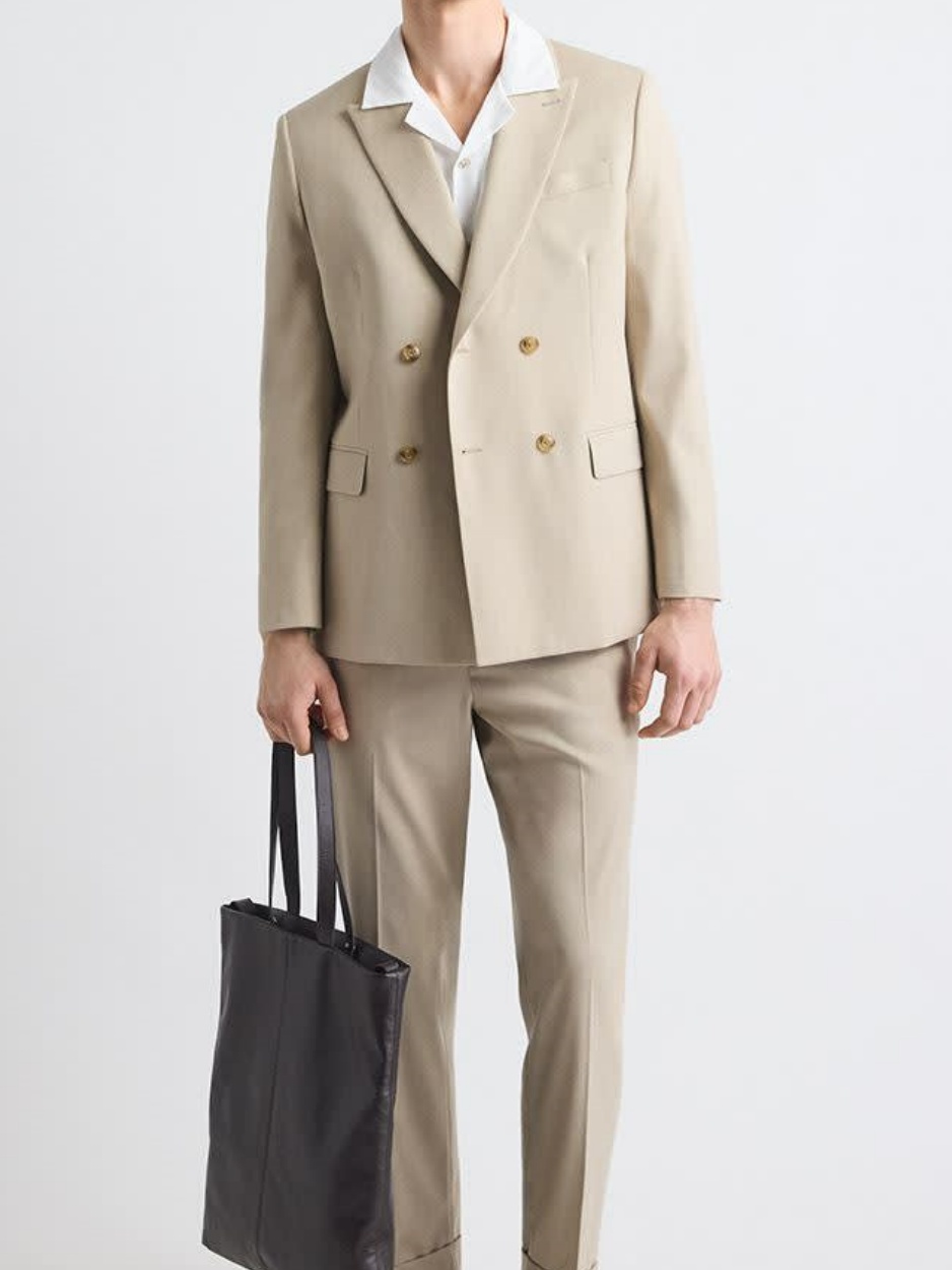 Beige Double Breasted Tailored Business Style Suit Blazer