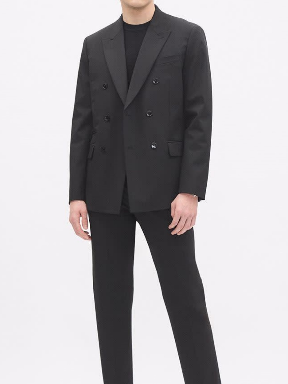 Commuting Style Tailored-Fit Double-Breasted Black Suit Blazer