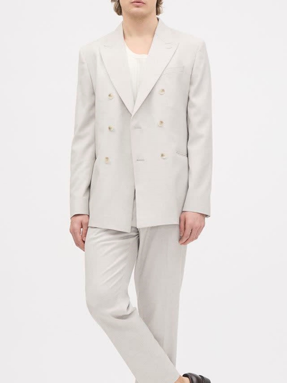 Silver Gray Double Breasted Suit Blazer