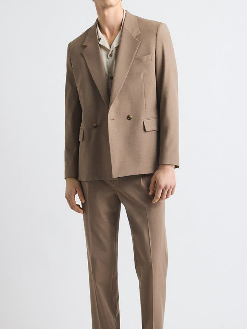 Rose Taupe Relaxed-Fit Double-Breasted Suit Blazer
