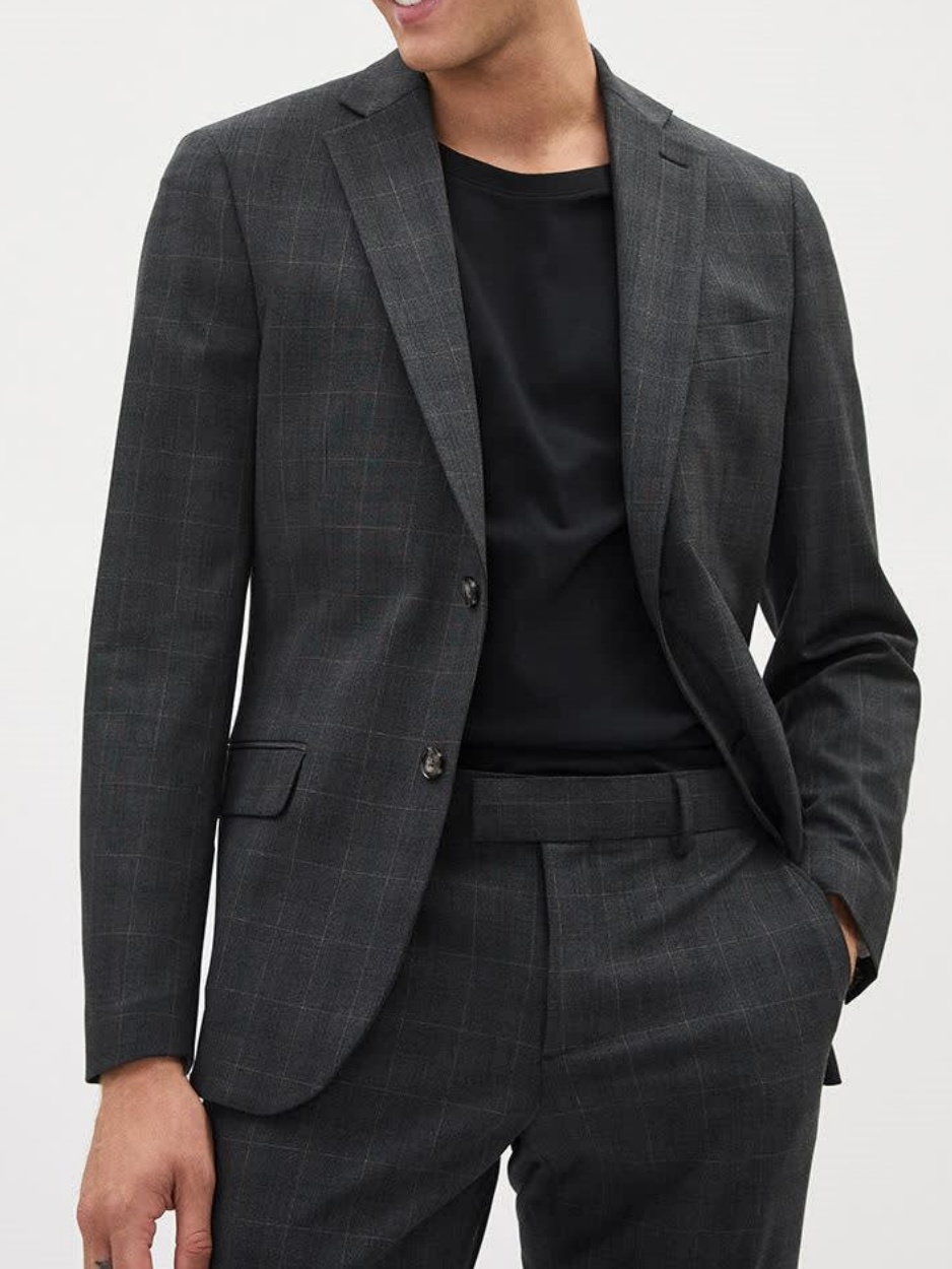 Commuting Style Slim-Fit Charcoal Suit Blazer