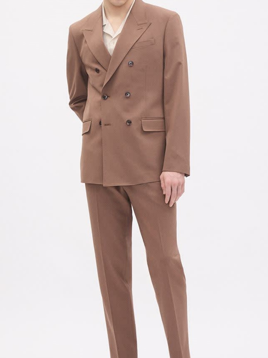 Terracotta Tailored-Fit Double-Breasted Suit Blazer