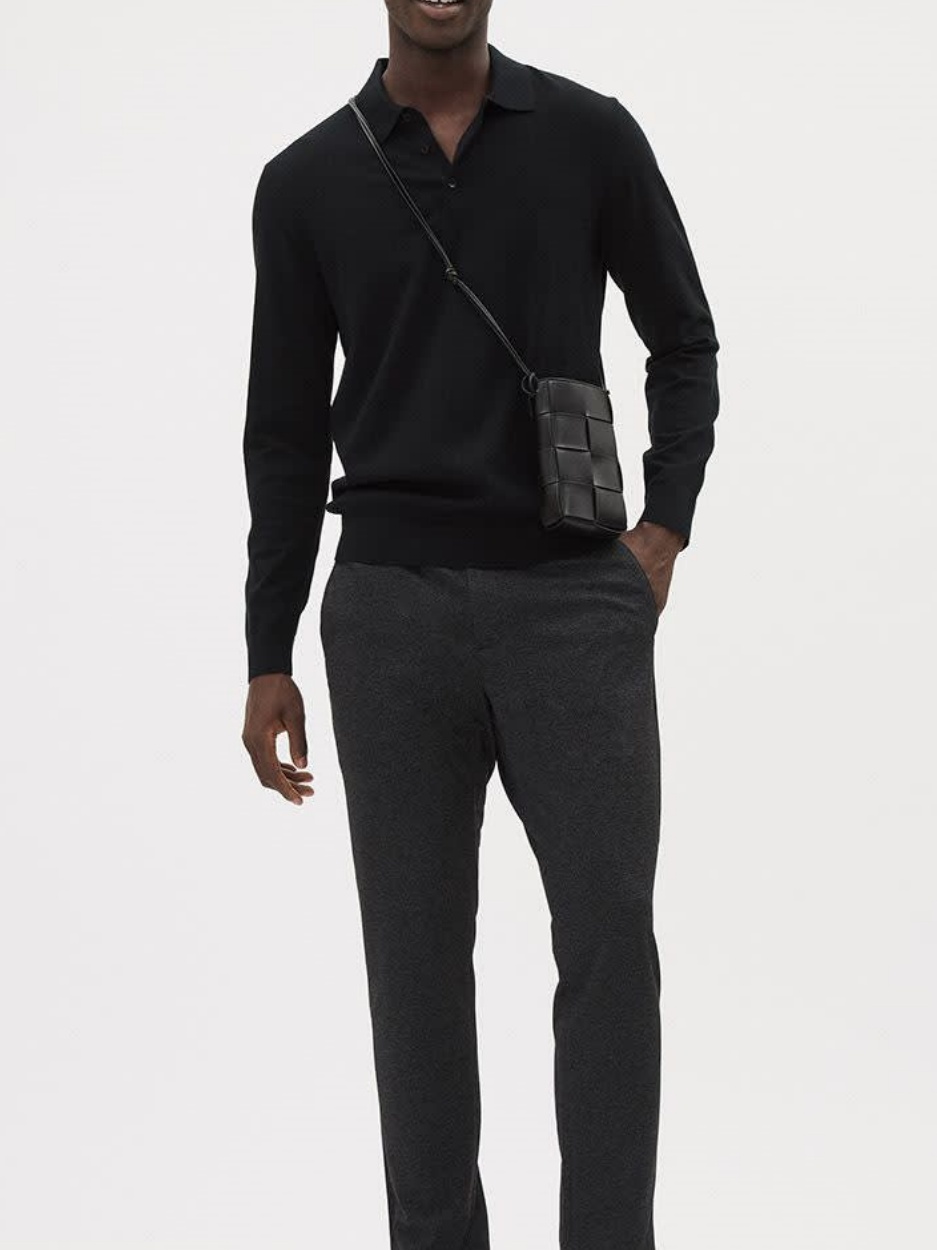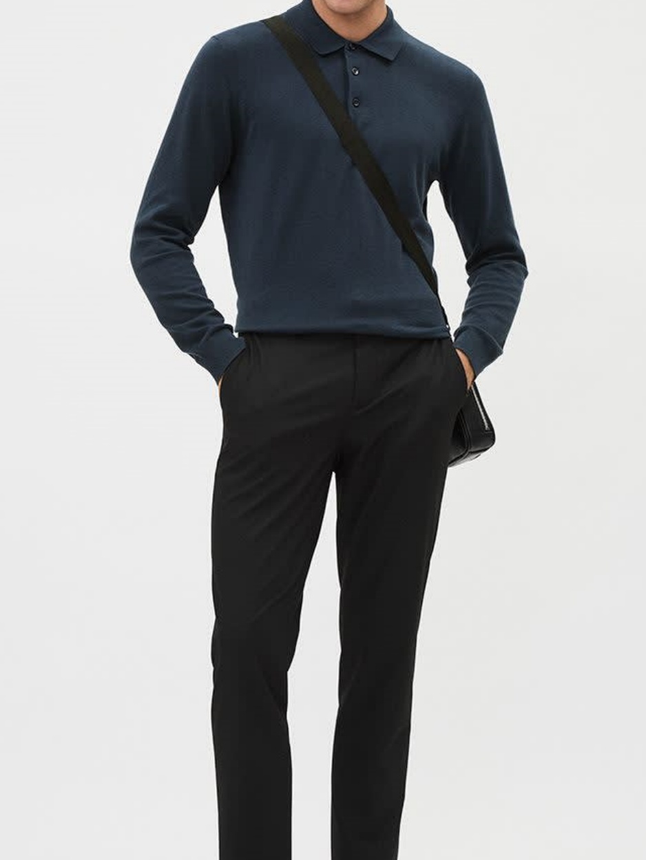 Black Cotton Long-Sleeve Polo Sweater