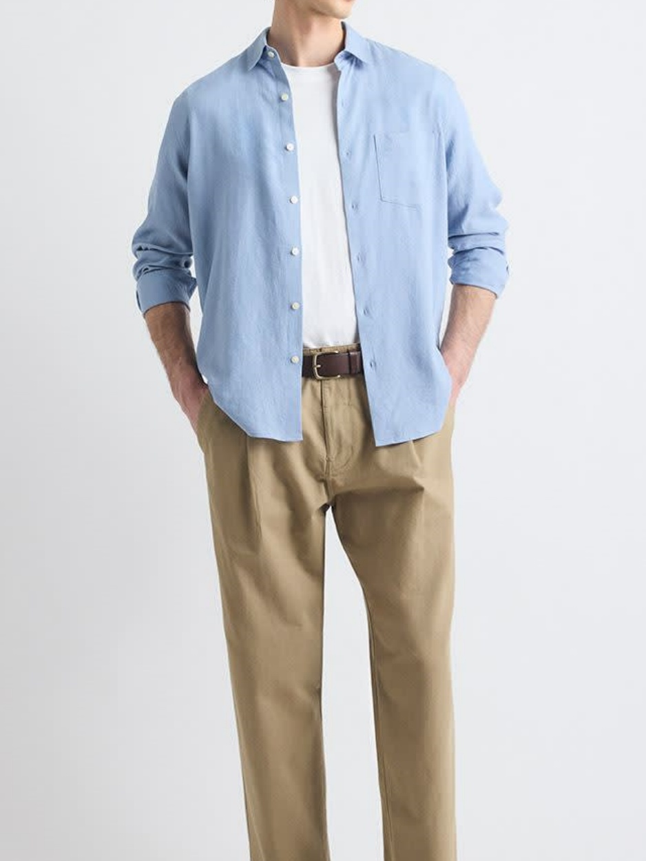 Silken blue Long-Sleeve Linen-Blend Shirt