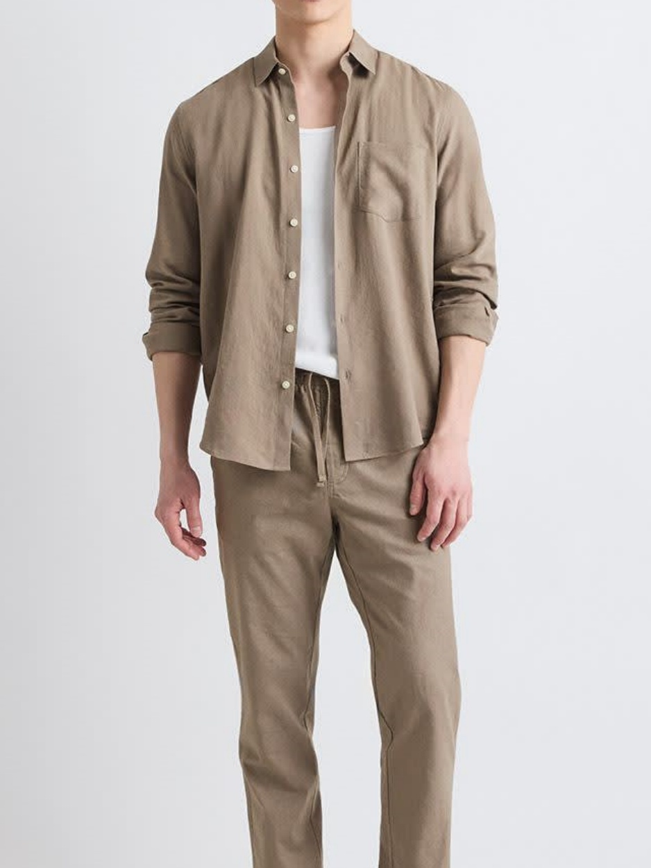 Khaki Long Sleeve Button Down Shirt With Pocket