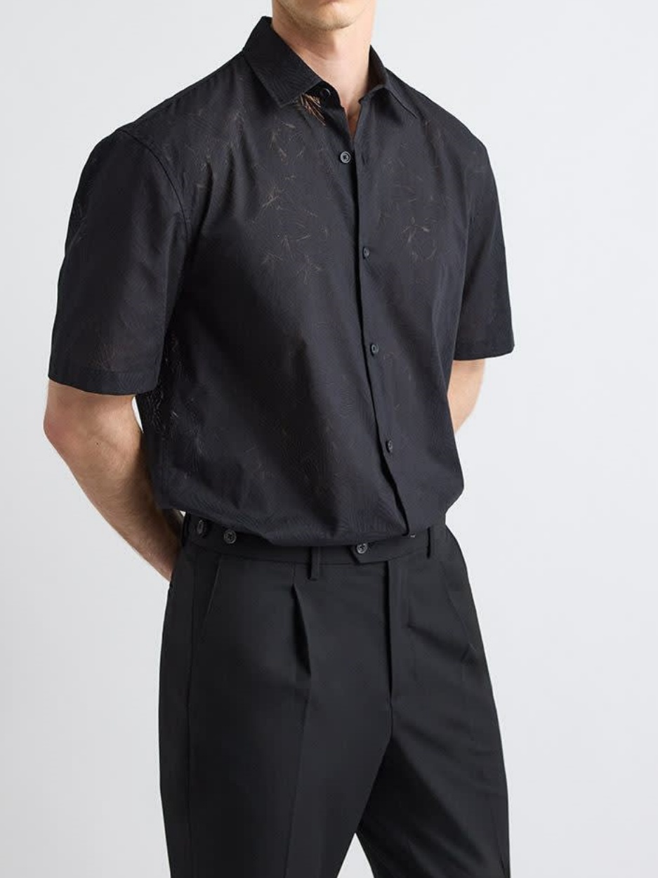 Bright white Tailored-Fit Dress Shirt with Floral Embroideries