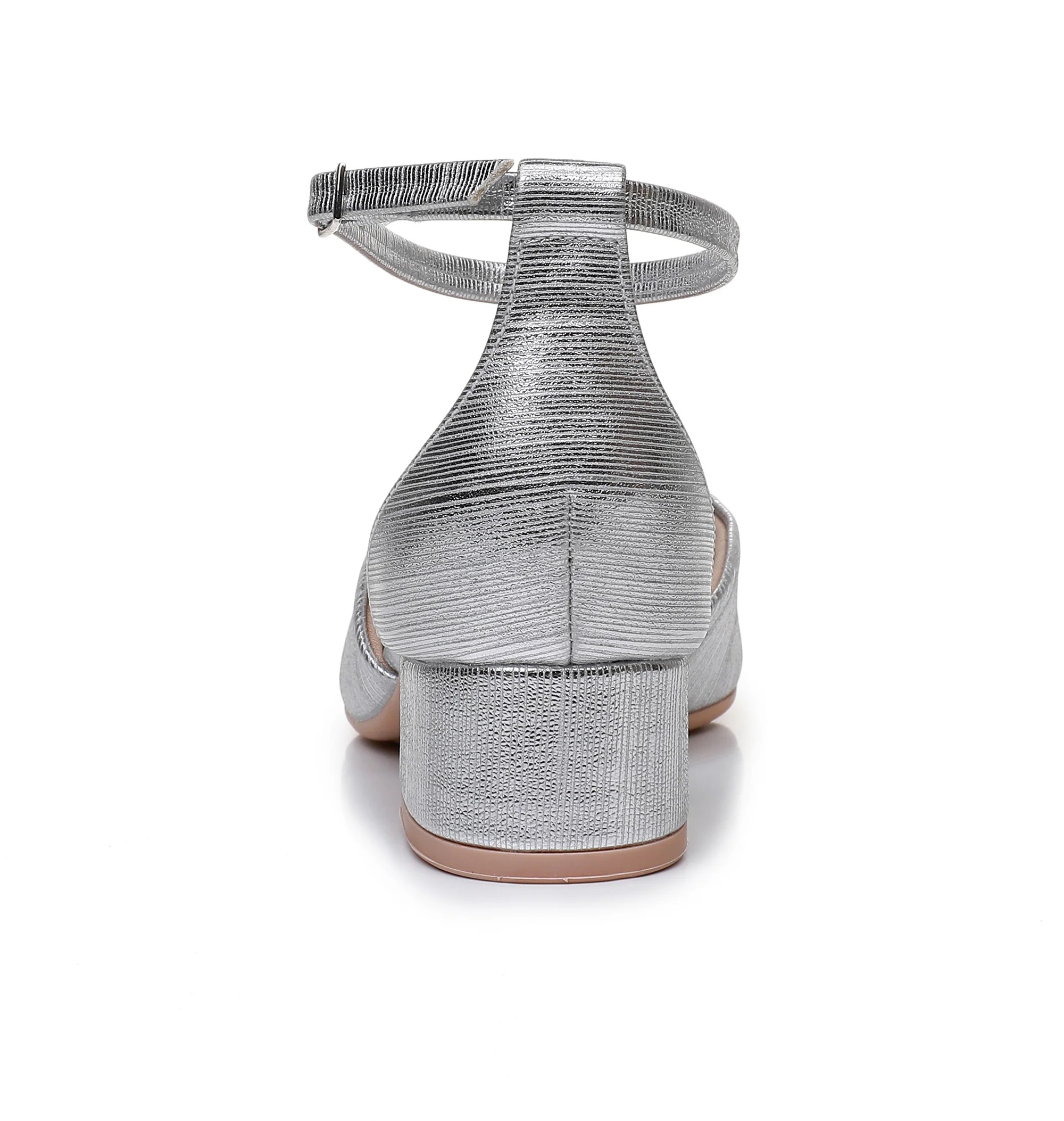Metallic Ankle Strap Peep Toe Block Heel Sandals