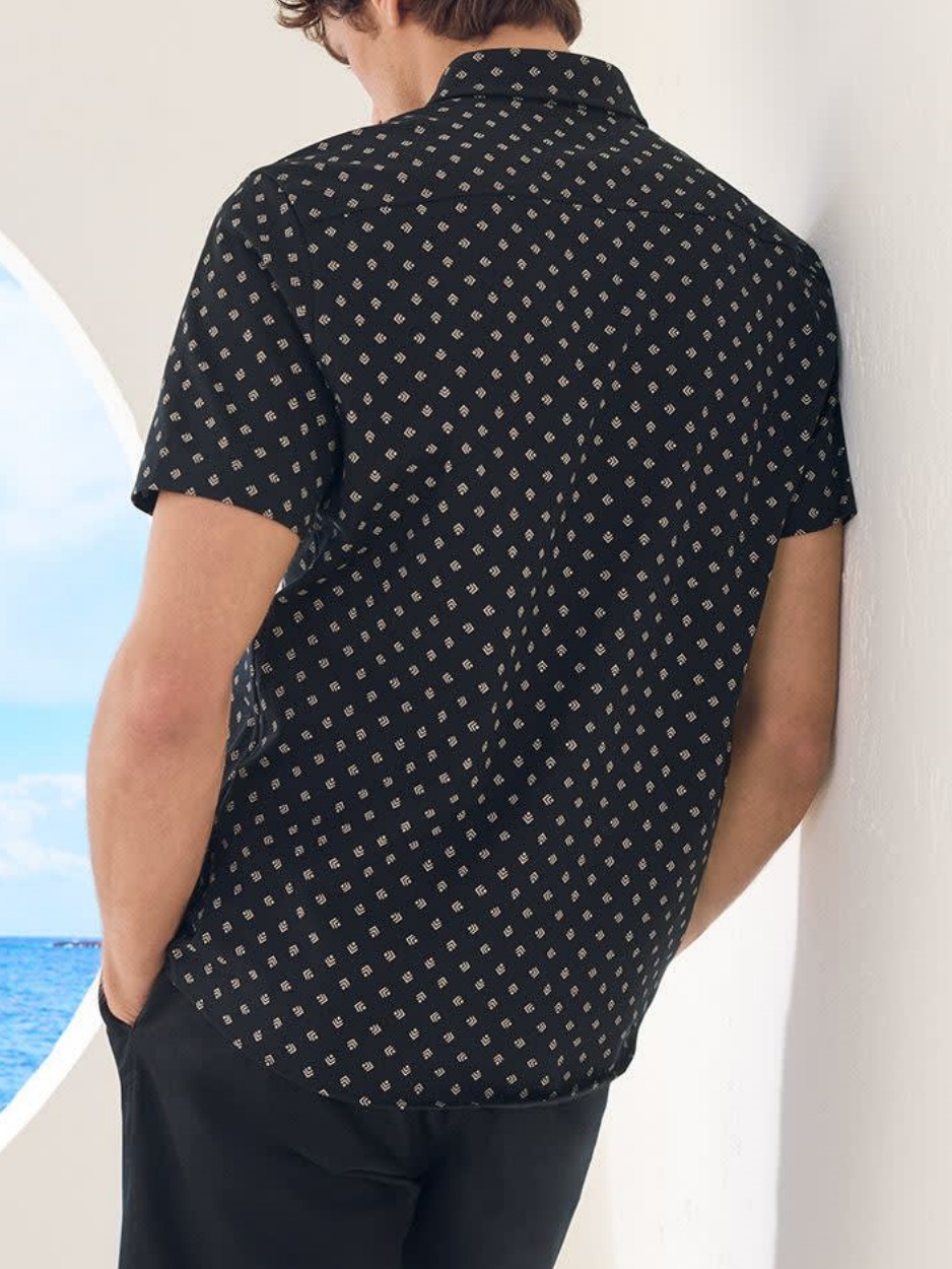 This casual short-sleeve shirt designed in a sleek slim fit and made in a comfortable jersey knit is just what you need to elevate your style on vacation.