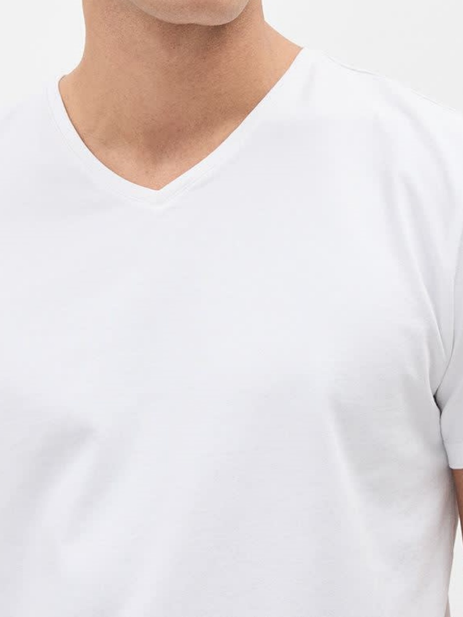 - V-neck- Short sleeve- 95% Supima cotton (R)*- Long wearing, soft and breathable- Our model wears a size M and is 6'2" (1m88)