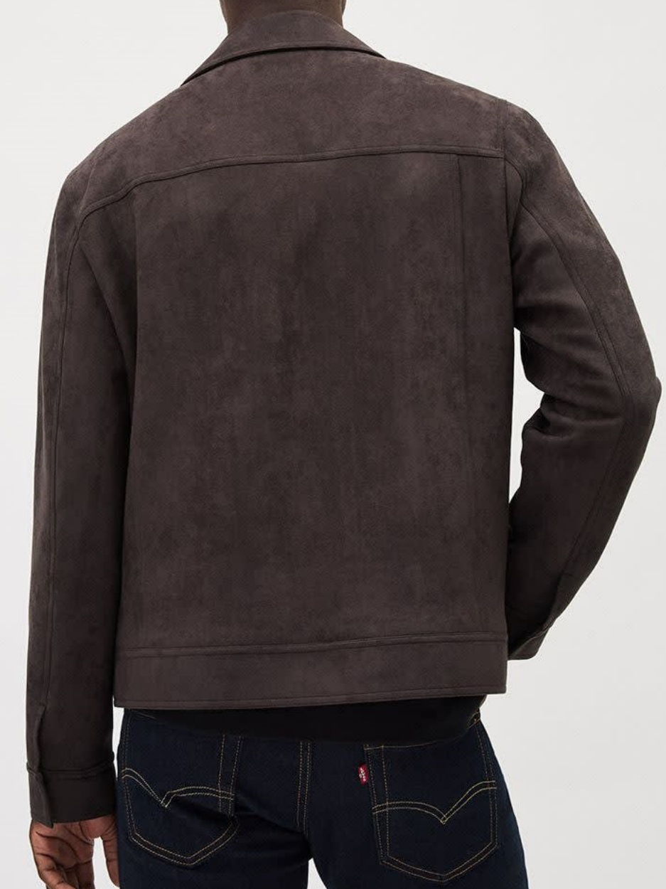 Brown Faux Suede Jacket with Shirt Collar