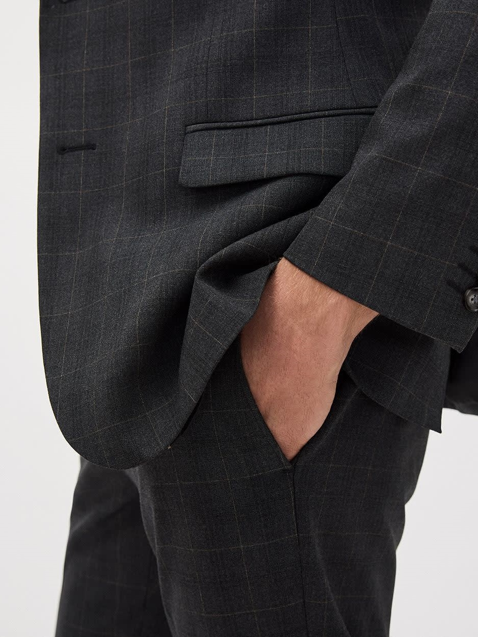 Made in a stretch woven fabric that is light and comfortable, you can't go wrong with this simple yet sophisticated dark grey slim-fit blazer featuring a checkered pattern. Matching suit pant available.