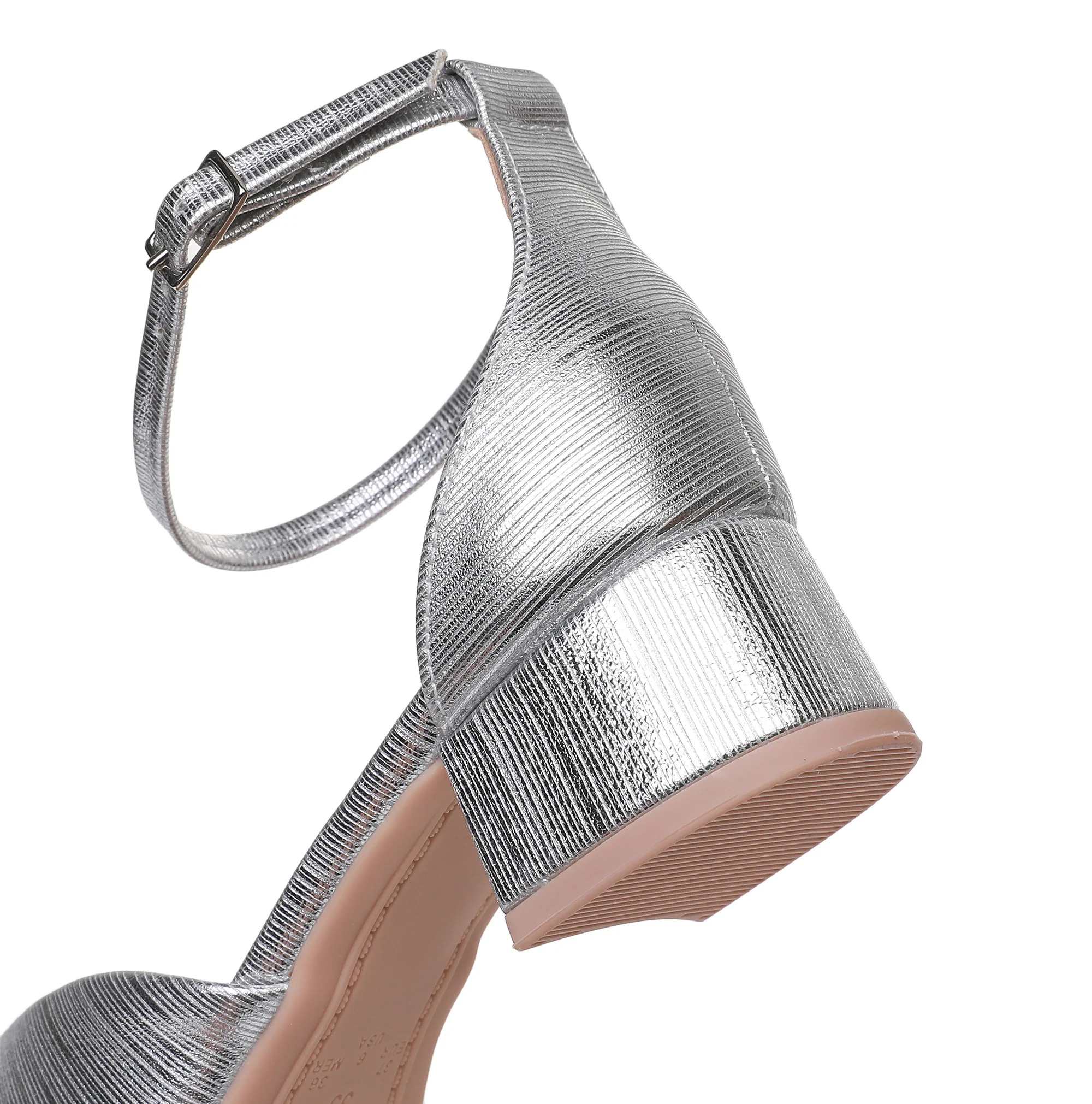 Metallic Ankle Strap Peep Toe Block Heel Sandals